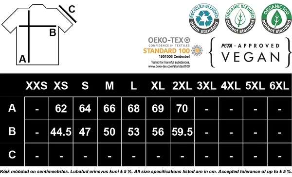 Materjal: 80% orgaaniline puuvill / 20% taaskasutatud polüester